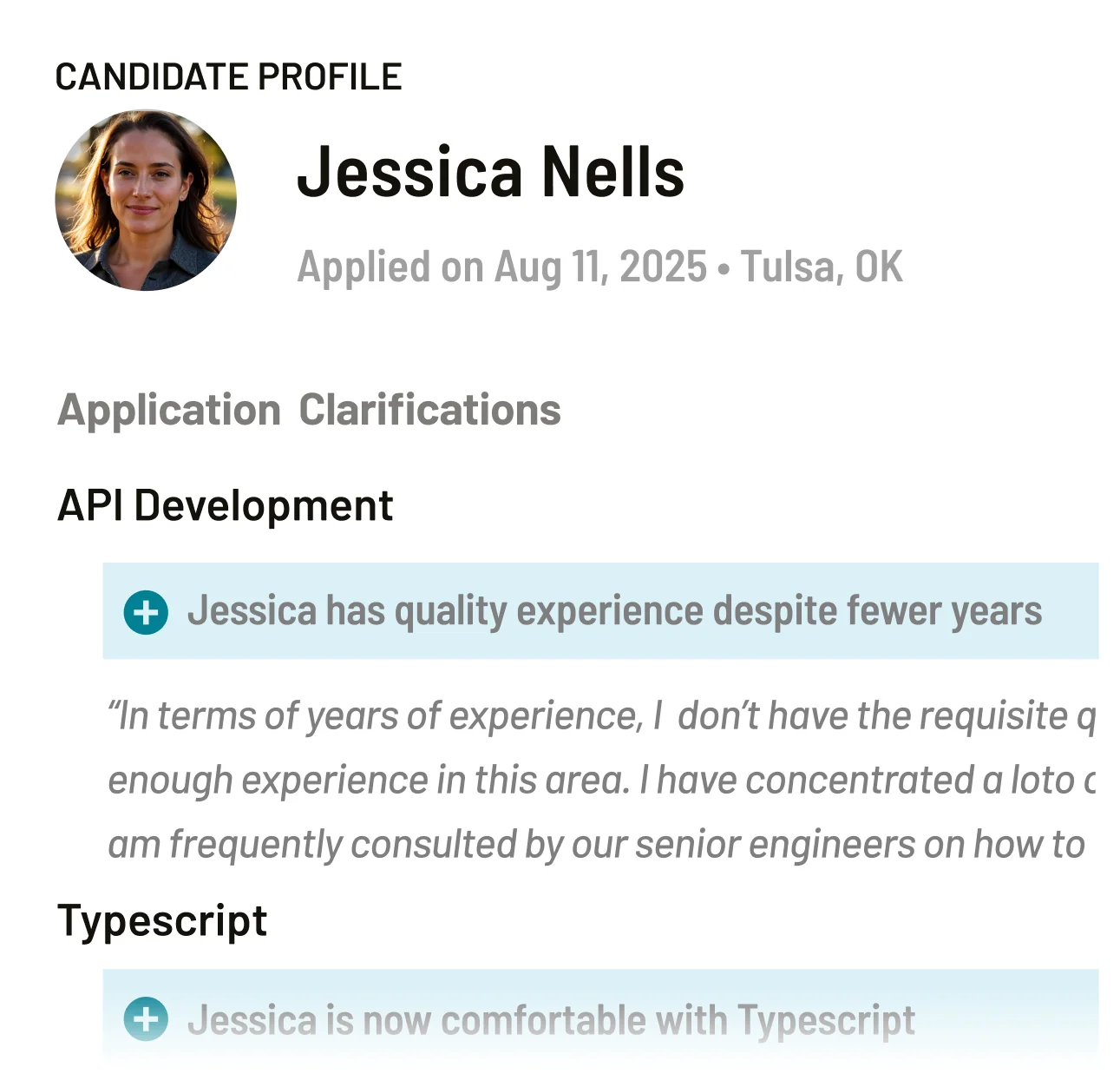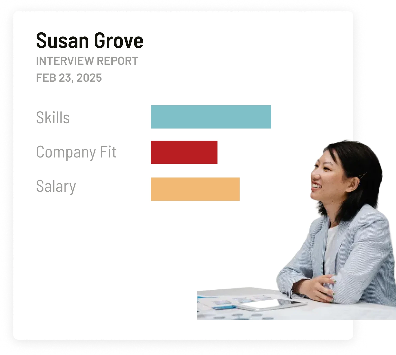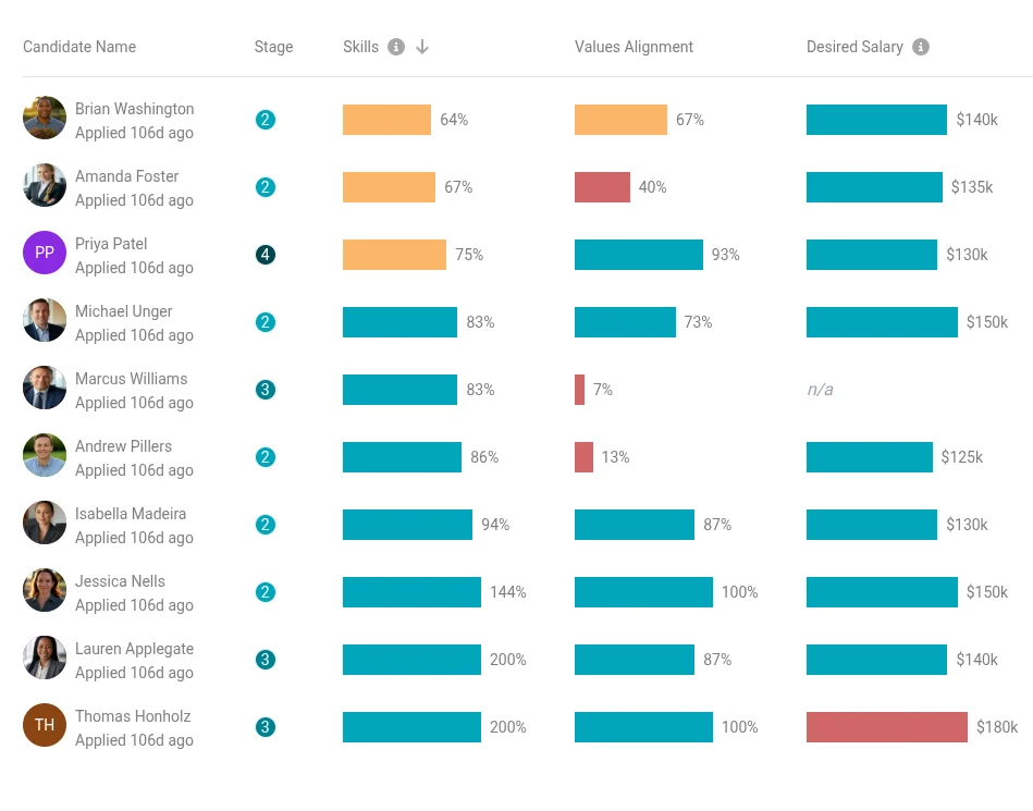 You determine whether candidates are a fit based on the three most important factors: Skills, Company Fit, and Desired Salary. Our software is designed to give you everything you need to move forward.